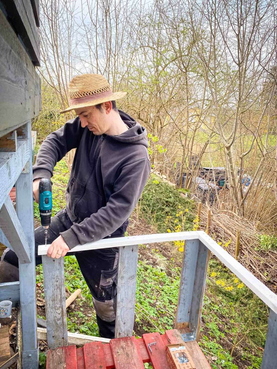 Unser Kleingärtner hat einen neuen Lieblingsplatz: sein „Baumhaus“ – ein Spielturm aus Holz, den wir fast nur aus Second-Hand-Teilen gebastelt haben. Hier lest ihr, wie ihr so ein Spielhaus selber baut!