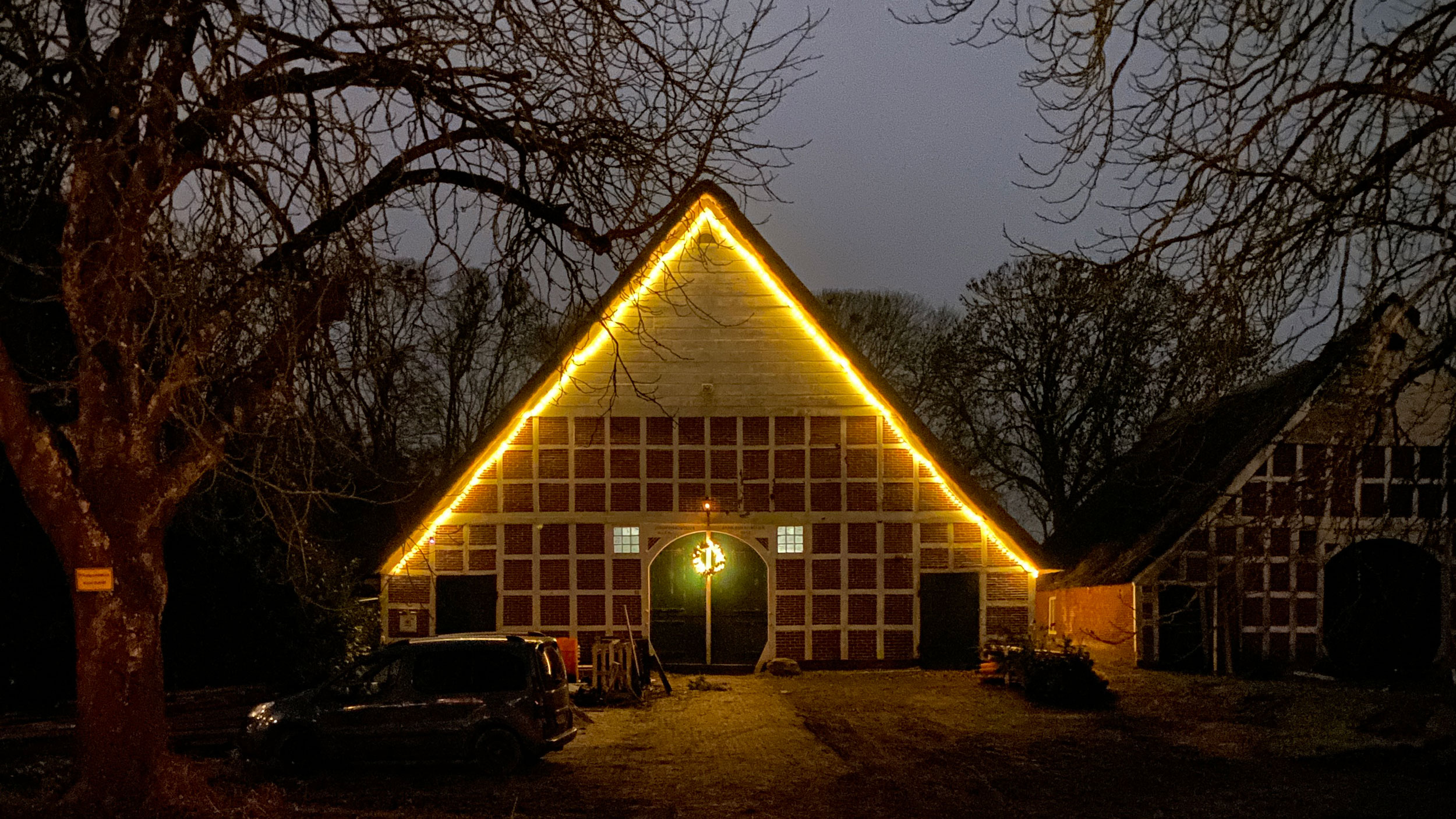 Bis Weihnachten wollen wir so viel wie möglich abschließen, die Ferienwohnung vermieten und vor allem ein paar Tage frei haben. Im Januar geht es weiter – mit Wildblumenwiese, Gartengestaltung und den Ideen, die jetzt schon bereitstehen. Der Weg dorthin ist kein Sprint, sondern ein Sammeln von Abenden, Entscheidungen und kleinen Momenten: ein Kranz an der Tür, Lichterketten am Giebel, Farbe im Gesicht und das Gefühl, dass aus Plänen irgendwann Räume werden.